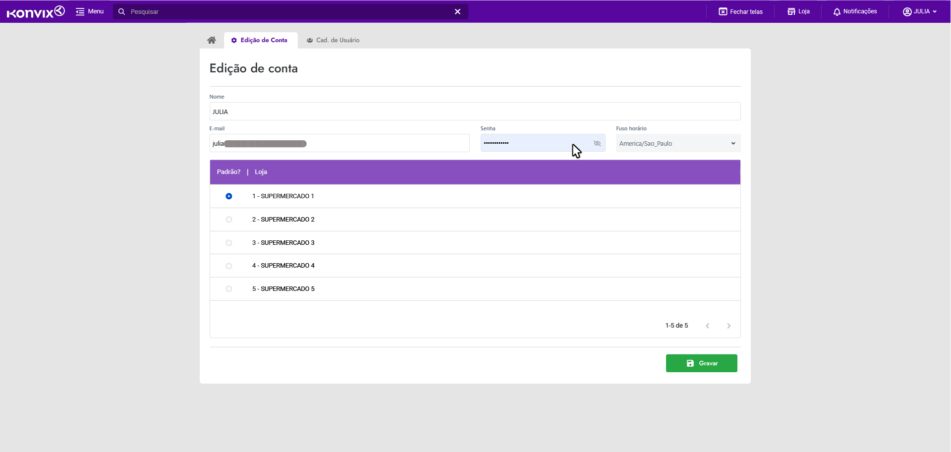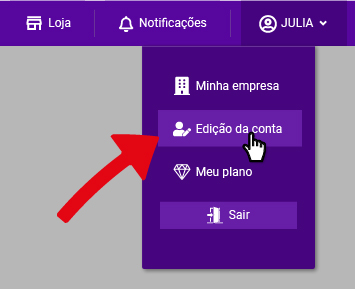 Um atalho para a tela de Edição de Conta foi incluído no menu suspenso do Usuário, facilitando o acesso à funcionalidade.